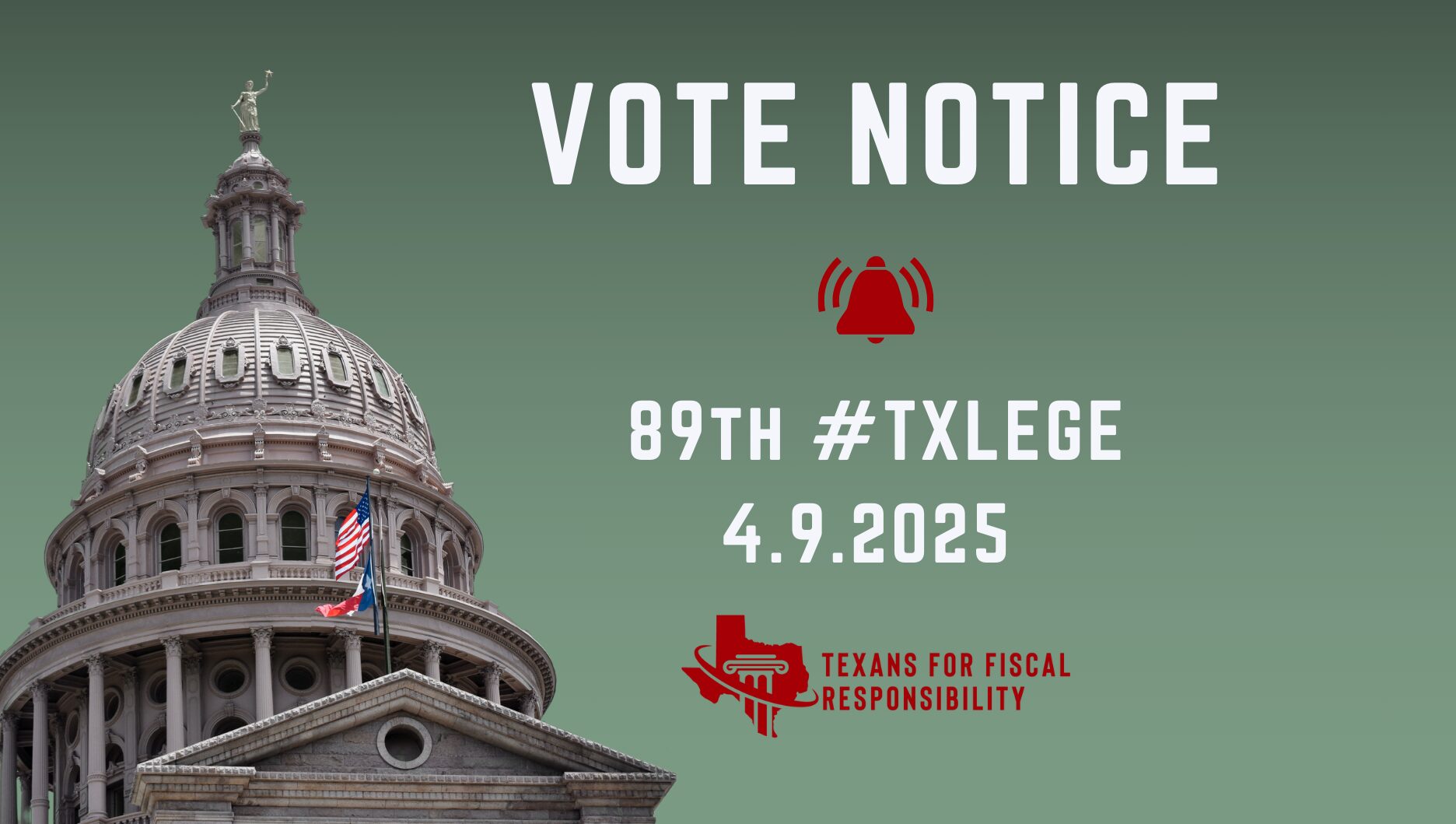 Texans for Fiscal Responsibility has issued the following vote notice for April 9th, 2025