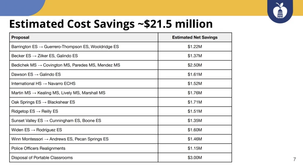 The numbers are stark. The closure of the campuses will save approximately $21.5 million annually and erase a $19.7 million budget deficit. AISD has been operating schools at fractions of capacity while simultaneously running massive budget shortfalls.