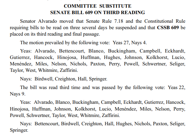 SB 609 saw virtually no resistance in the Texas House of Representatives either. Only 40 lawmakers voted in opposition.